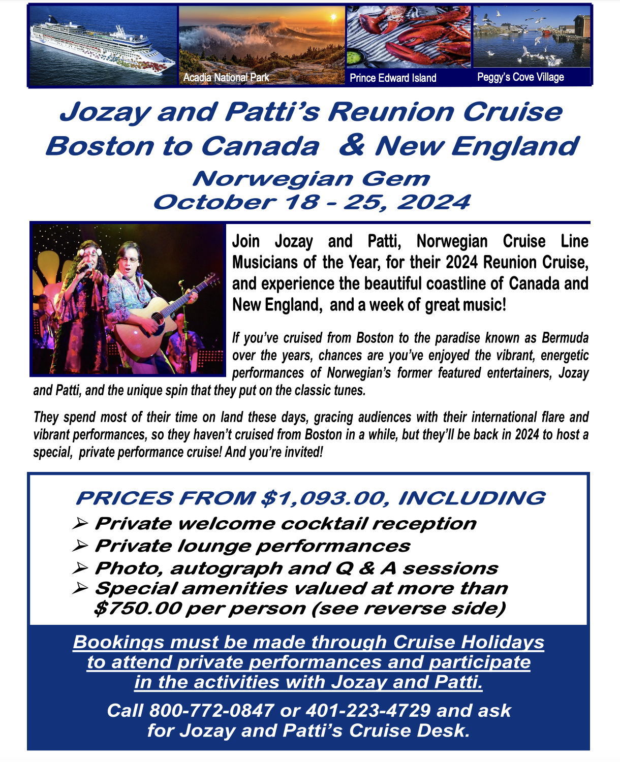 Lastly, we are very anxious to see YOU this October at our first private JOZAY AND PATTI cruise.